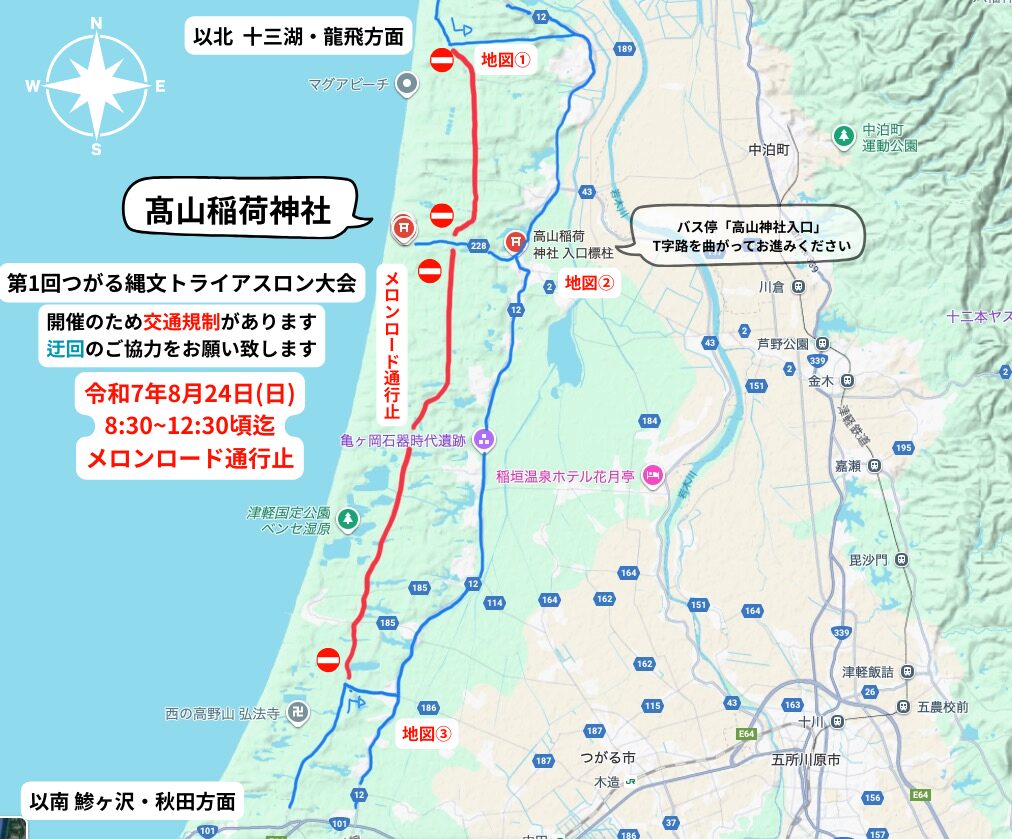 【交通規制のお知らせ】第1回つがる縄文トライアスロン大会開催に伴う通行止めについて