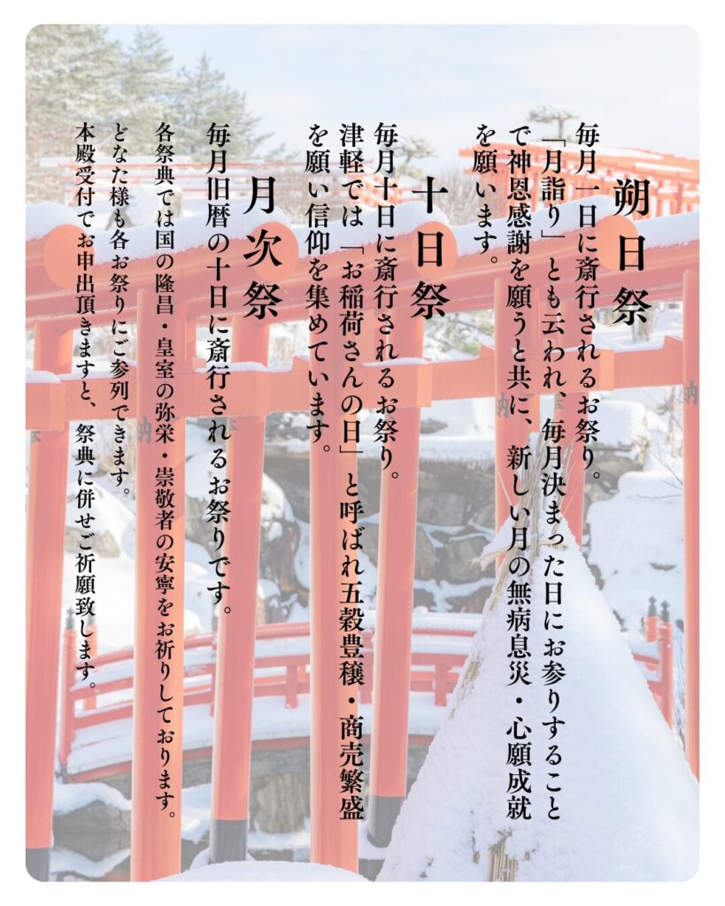 津軽では「お稲荷さんの日」と呼ばれ、五穀豊穣・商売繁盛を願い信仰を集めています。