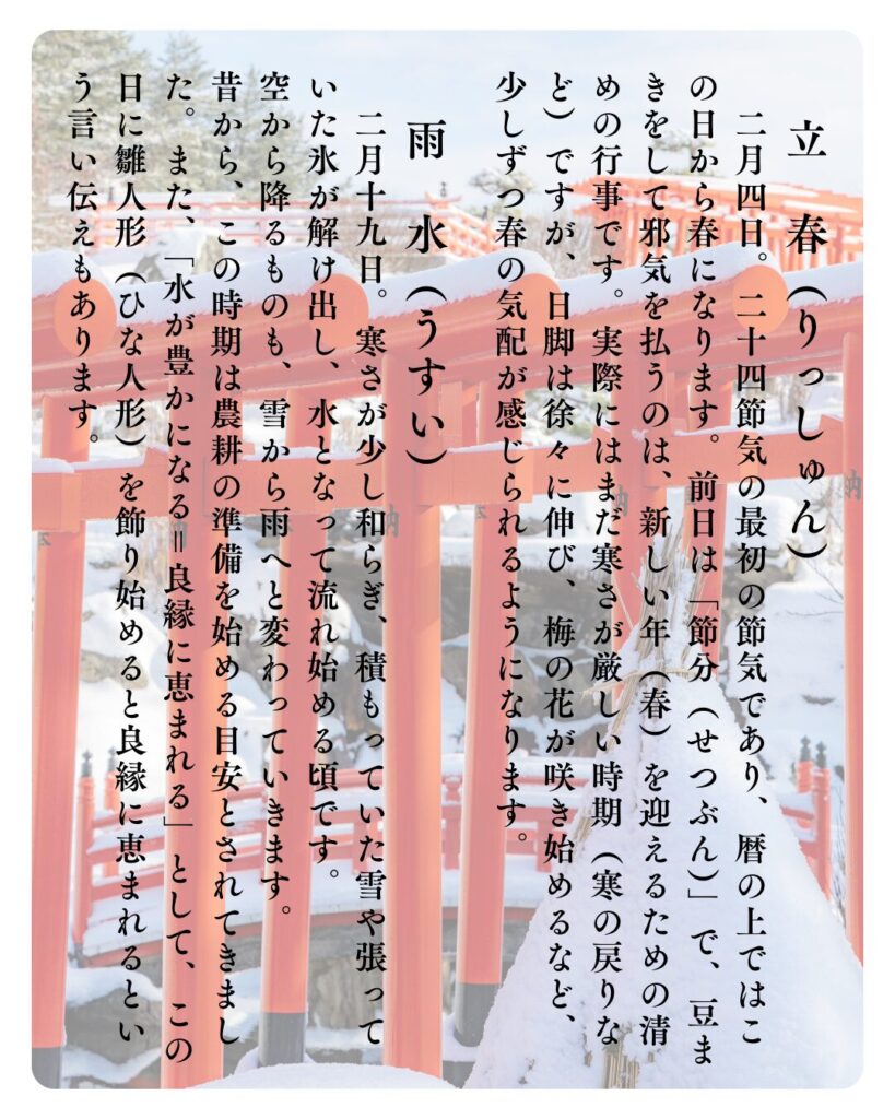 初代天皇である神武天皇(じんむてんのう)が、橿原(かしはら:現在の奈良県)の宮で即位された日(紀元前660年1月1日)に由来します。今年は、即位されてから2686年(皇紀2686年)を迎えます。日本の国が始まったことを祝い、皇室の繁栄と国家国民の安泰をお祈りいたします。